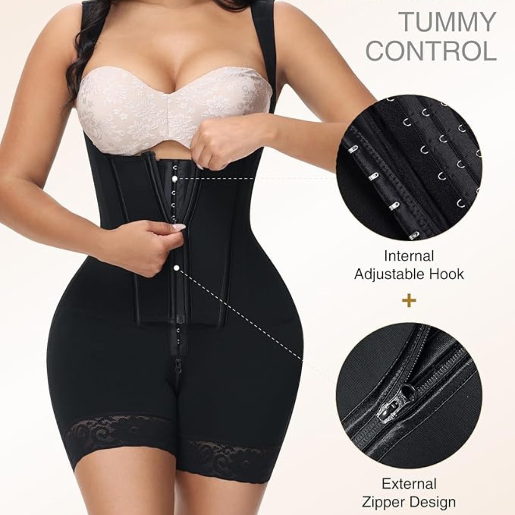 CONVENIENT DESIGN & ADJUSTABLE FIT: The thoughtful construction of CurveLuxe™ includes a zippered open crotch, adjustable shoulder straps, and a 3-row inner hook system. Customizable fit and easy bathroom access simplify daily wear.